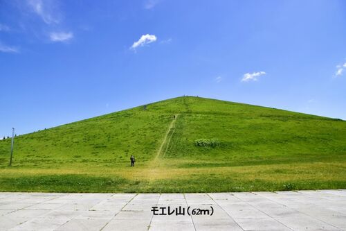 <モエレ山>標高62mの人工の山は札幌市北東部唯一の山として地域のランドマークの機能を果たしています、頂上からは札幌市内全体を見渡す展望台となっています。すぐ近くに丘珠空港(道内のみ)があります。ちなみに世界遺産のエジプトギザのピラミットは…